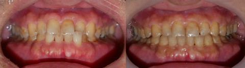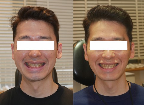 まず、開閉運動を改善し、その後、ブラケットを装着し、上下のかみ合わせを改善しました。