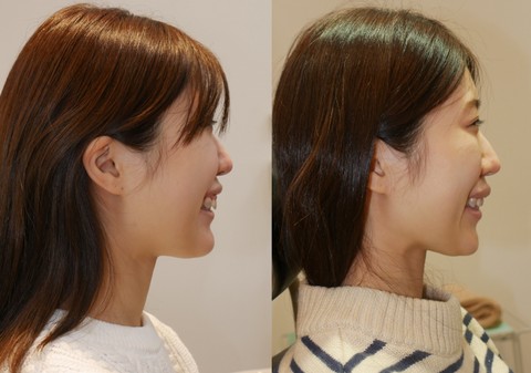 顎を本来の位置に整えると、スッキリとした輪郭になり、ほうれい線が浅くなり、頬の歪みが取れる事で、ツルツルとした肌の印象になります。