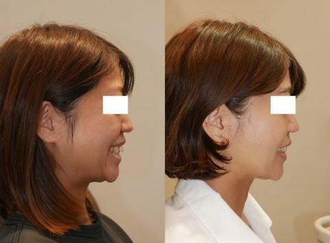 顎を本来の位置に整えると、スッキリとした輪郭になり、ほうれい線が浅くなり、頬の歪みが取れる事で、ツルツルとした肌の印象になりました。