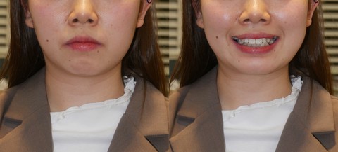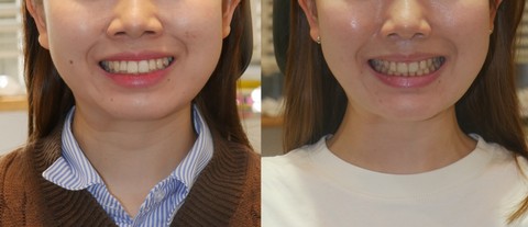 仕上げに上顎の犬歯を笑顔になった時の唇の形に沿うようにすることでより可愛い歯並びを目指しました。