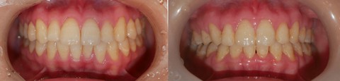 かみ合わせが不安定なため、まず最初に顎運動などのお口の機能を治療し、顎を開閉するときにブレずに真っ直ぐ咬めるようにしました。