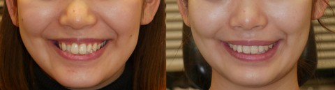 仕上げに上顎の犬歯を笑顔になった時の唇の形に沿うようにすることでより可愛い歯並びを目指しました。