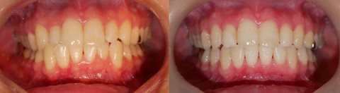 かみ合わせが不安定なため、まず最初に顎運動などのお口の機能を治療し、顎を開閉するときにブレずに真っ直ぐ咬めるようにしました。